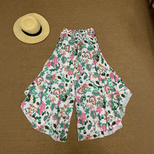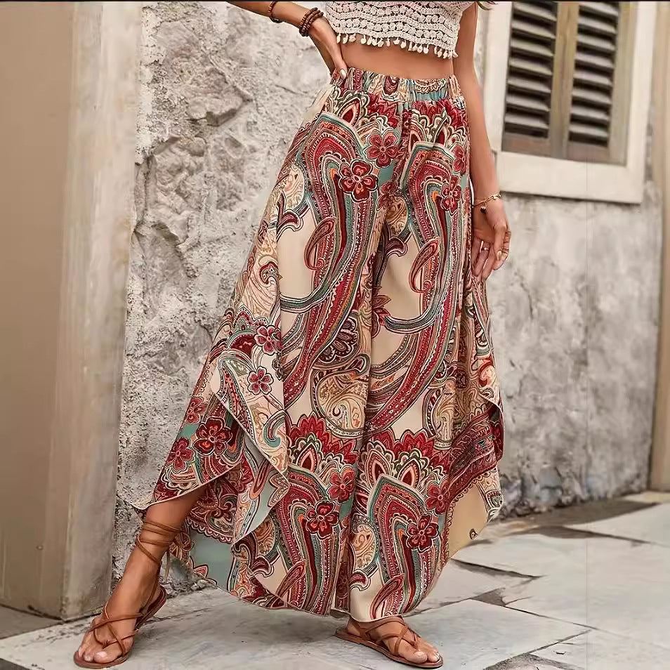 Vintage-style Artistic Collage Polyester Skirt-trousers Casual Pants Wide-leg Pants
